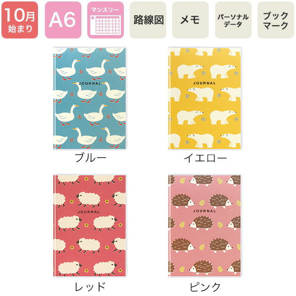 【2020年手帳】スケジュール帳 ダイアリー【2019年10月始まり】 アニマルパターン A6マンスリー Type3(ブルー イエロー レッド ピンク)《おしゃれ/大人/かわいい》【無料ラッピング対象外】【メール便あす楽対象外】